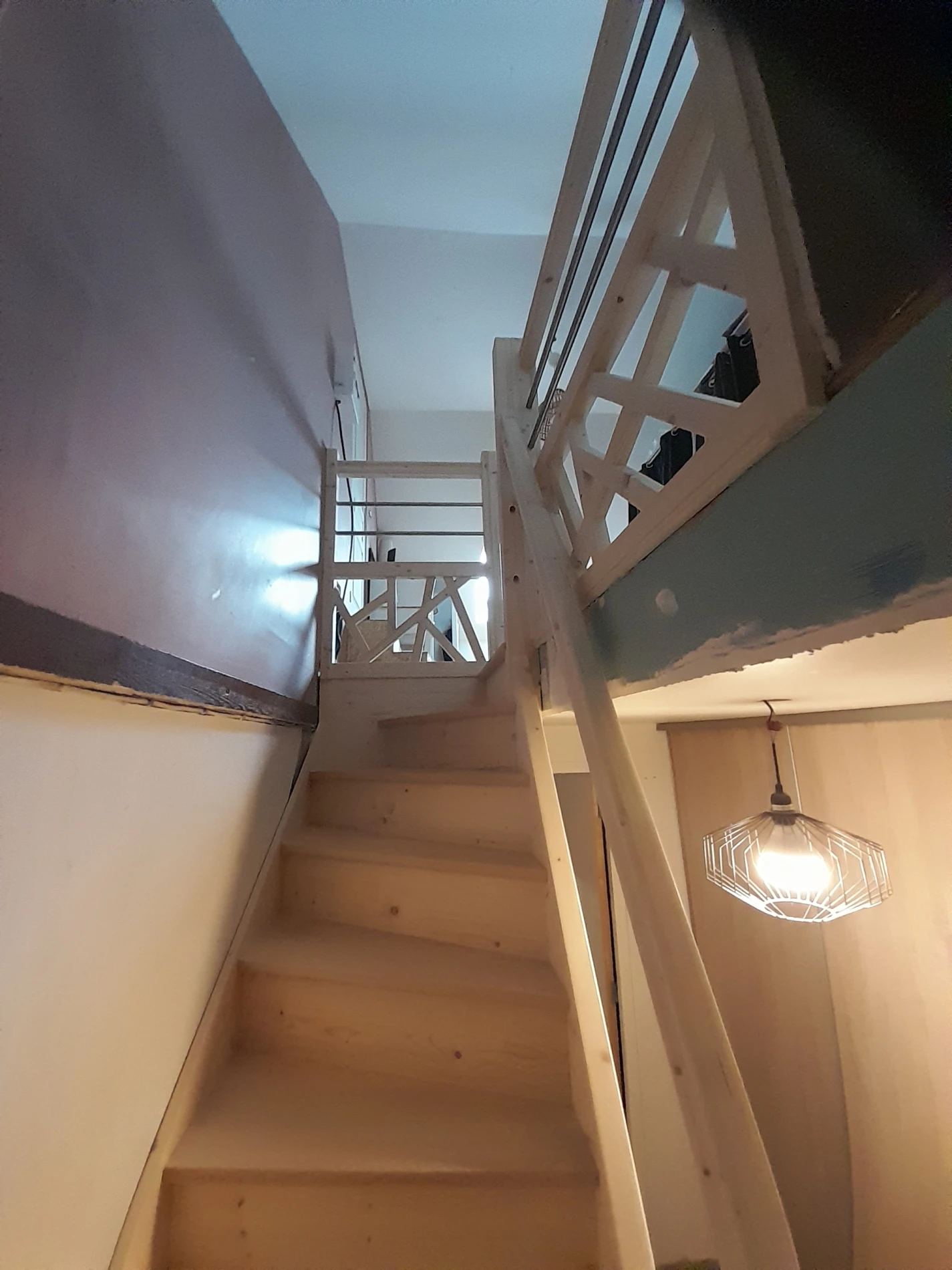 La trémie n'étant pas suffisamment grande, j'ai due l'agrandir. Placé dans un espace réduit, j'ai conçu l'escalier pour qu'il soit agréable à utiliser tout en apportant une touche de modernité aux espaces. L'utilisation de l'épicéa permet de proposer un escalier économique tout en gardant une conception traditionnelle et durable dans le temps. L'utilisation de Hêtre blanc pour les marches évite une usure prématurée.