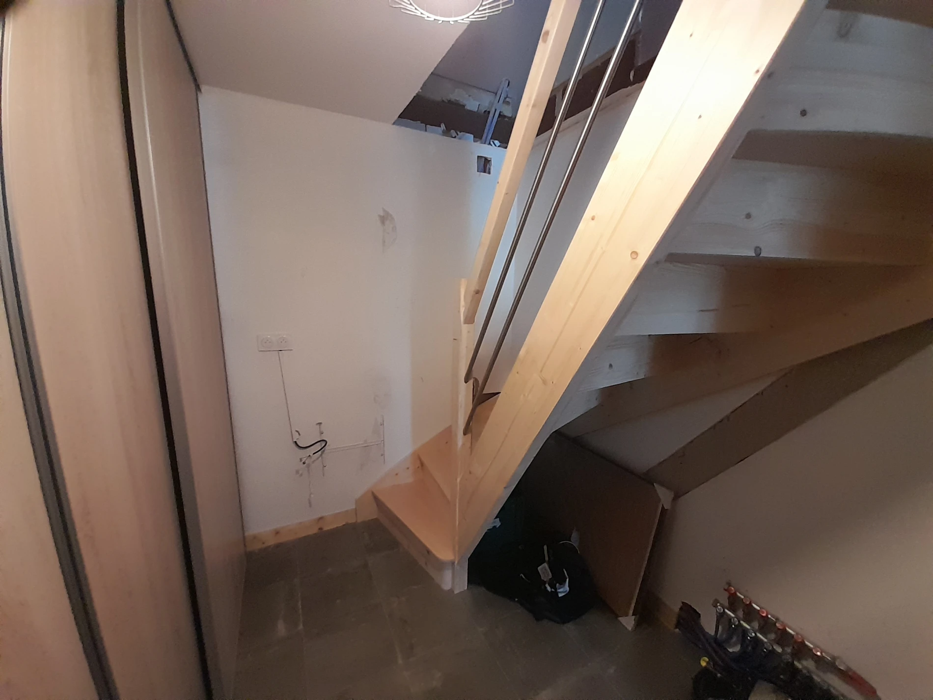 La présence de contremarches permettra d'envisager la réalisation de rangements sous l'escalier..